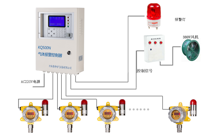 控制器具有8组可编程报警继电器和2组故障继电器,方便用户自由组合报警输出,可以直接联动控制风机,电磁阀等。